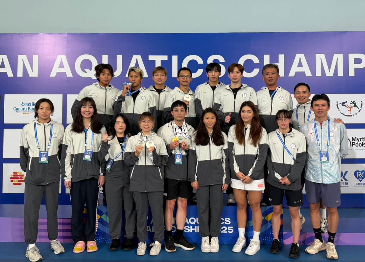 2025 年第 11 屆亞洲游泳錦標賽(11th Asian Aquatics Championships)在印度阿默達巴德隆(Ahmedabad)舉行,臺灣隊共拿下 2 金、7 銀、4 銅佳績: