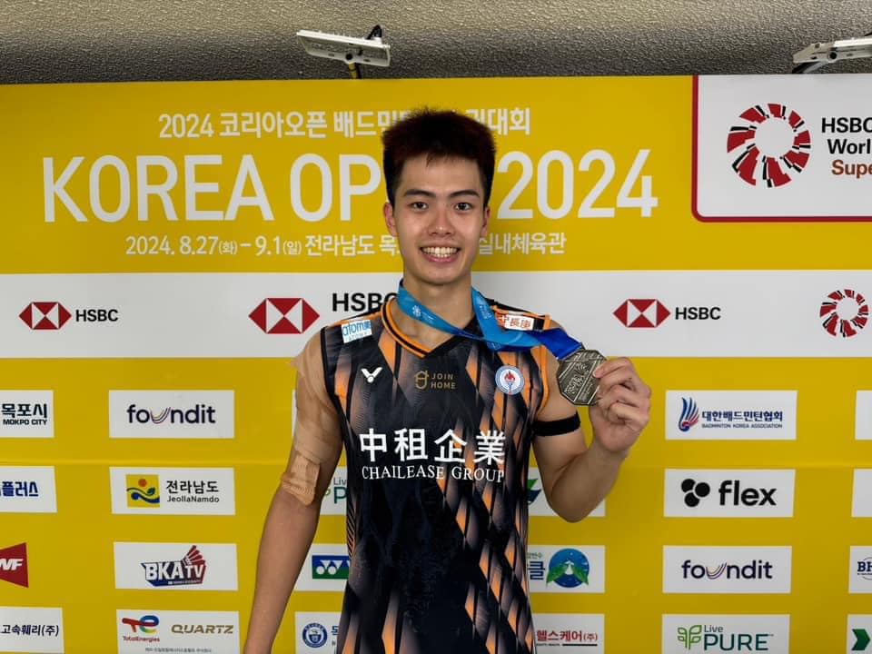 【紀路臺灣】2024 年 9 月 1 日,BWF 超級 500 韓國羽球公開賽傳來捷報,世界排名第 30 的臺灣男單好手李佳豪先後擊敗地主韓國選手全奕陳、臺灣隊友蘇力揚、杭州亞運金牌得主中國選手李詩灃、以及臺灣「左手重砲」林俊易,雖然最終在男單決賽以 16-21、22-20、18-21 不敵中國選手陸光祖,仍拿下生涯首座超級 500 系列亞軍,林俊易收獲並列銅牌。李佳豪下週世界排名將一舉爬升 6 名,登上世界第 24。
