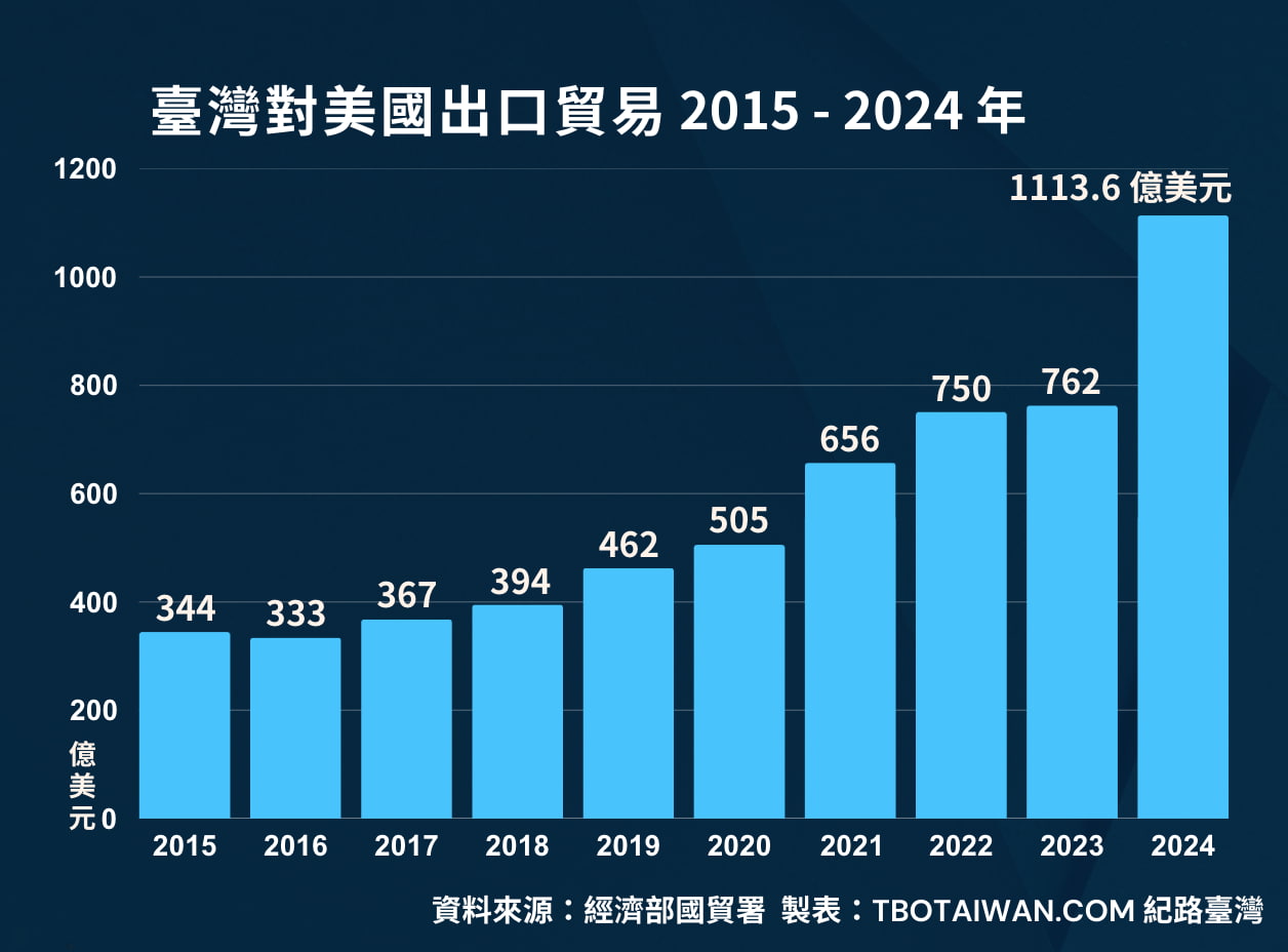 臺灣 2024 年出口美國 1113.6 億美元創新高